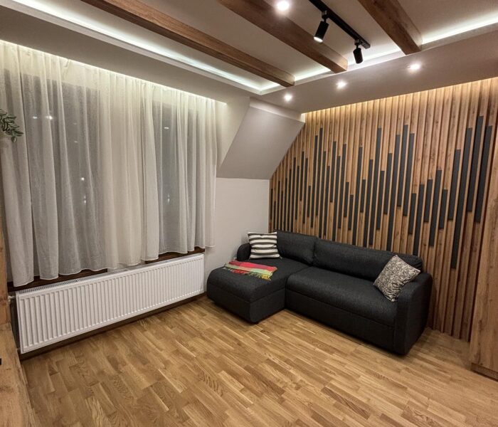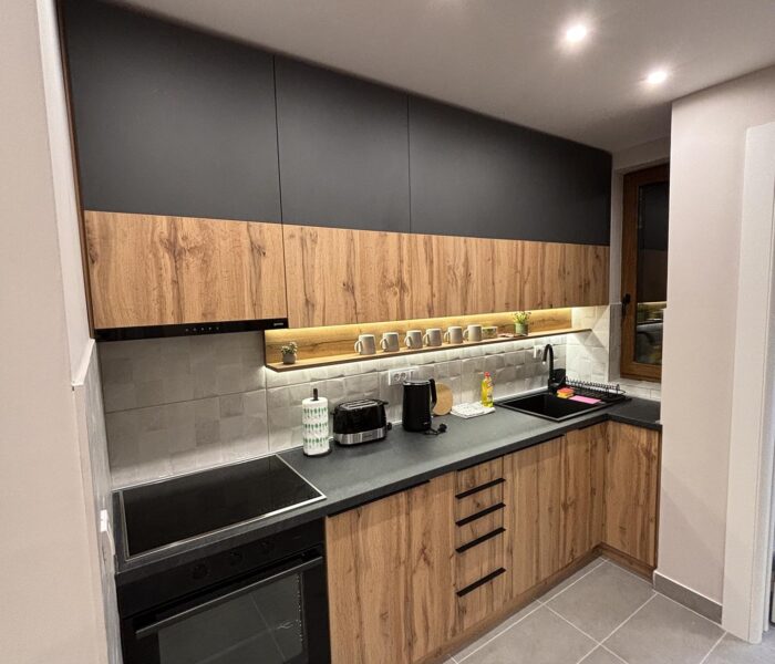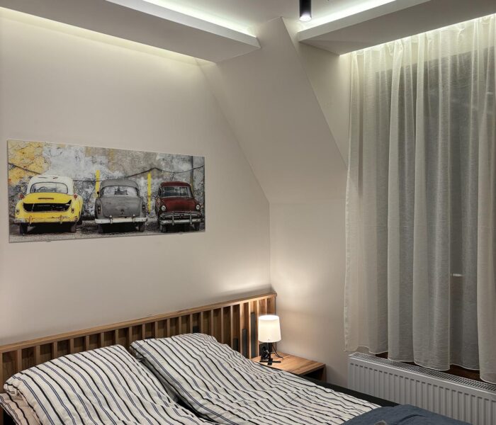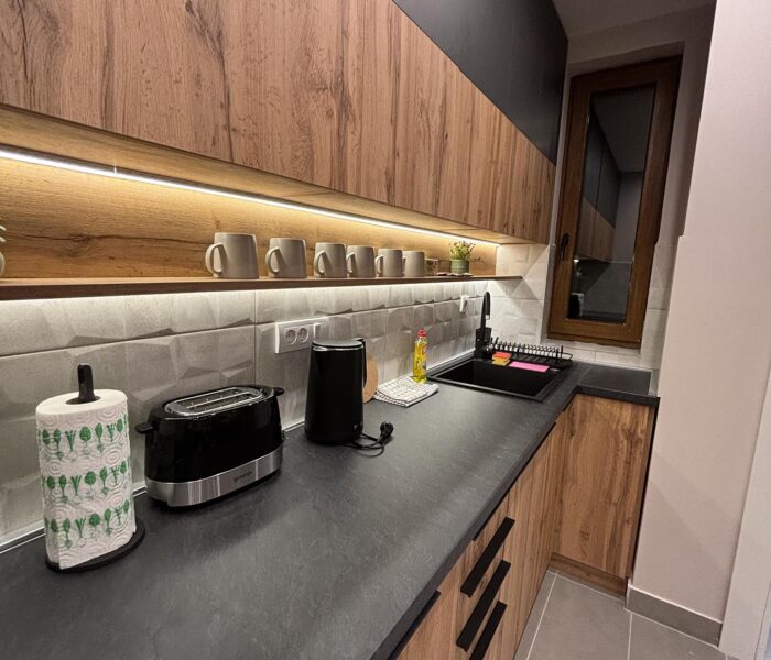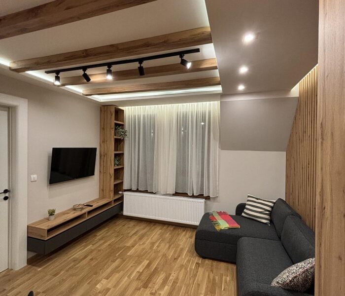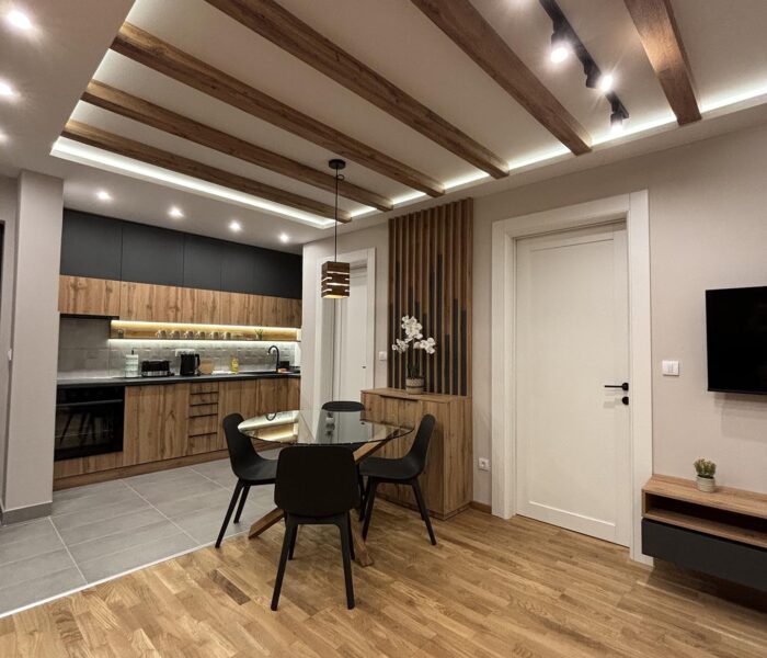 Uključuje opremljenu kuhinju, udoban dnevni boravak, spavaću sobu sa francuskim ležajem, kupatilo.