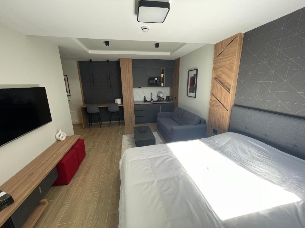 Luksuzni, potpuno novi studio apartman za smestaj do3 osobe, sa potpuno opremljenom kuhinjom, terasom u sred borove šume. Apartman se nalaze u okviru novog kompleksa Panorama.